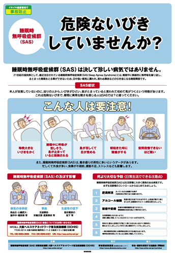 | 内容: | 睡眠時無呼吸症候群(SAS)の症状と影響、予防策を解説しています。 |